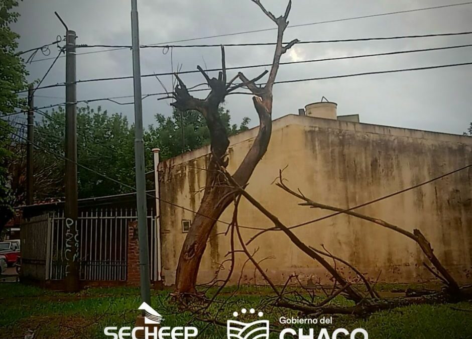 En la tarde de este sábado, tras un fuerte temporal de vientos y descargas atmosféricas, SECHEEP multiplicó la presencia de cuadrillas de trabajadores en el Gran Resistencia para restablecer el servicio afectado por la caída de árboles y ramas sobre las líneas; así como las voladuras de chapas y otros elementos sobre la infraestructura eléctrica.