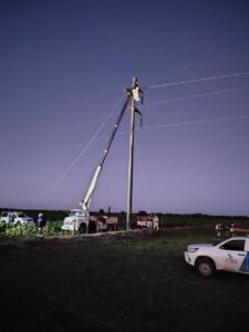 Los trabajos, que culminaron minutos antes de las 22 hs., incluyeron el relevamiento de estructuras, verificación de aisladores y reconexión segura de la línea lo que garantizó un restablecimiento confiable y estable del servicio.