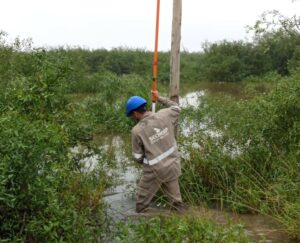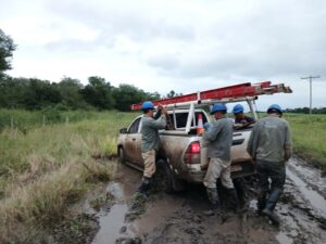 “La primera tarea de las cuadrillas fue la de erradicar posibles riesgos de electrocución, ya que hubo zonas que estuvieron y están anegadas. Paso siguiente, se procedió a normalizar el suministro eléctrico afectado por el temporal”, destacó el gerente de la zona Norte de Secheep, Eduardo Martínez.